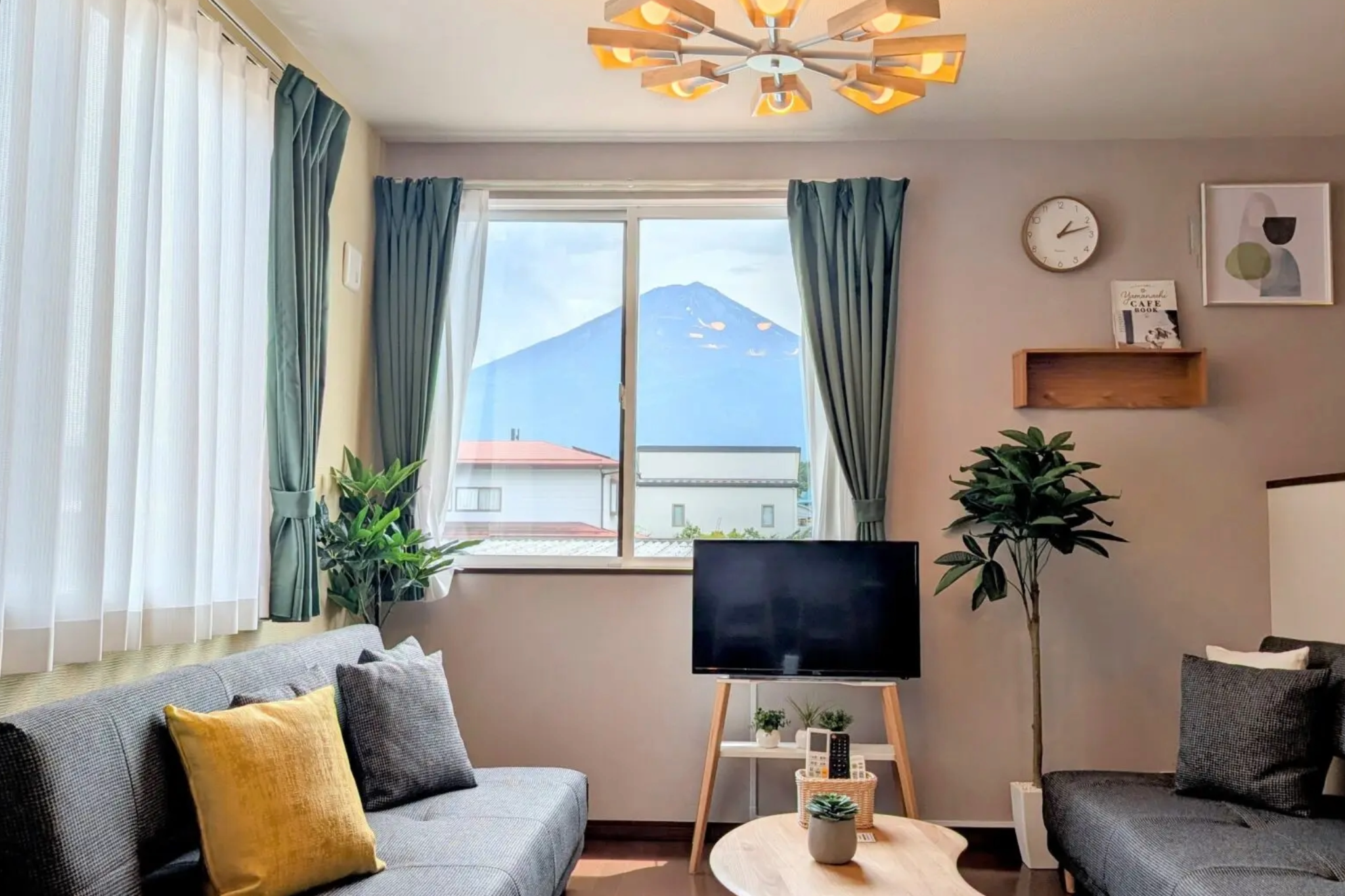 河口湖エリアの中でも特に富士山が美しく見える船津エリアに位置する、絶景一棟貸しヴィラ。