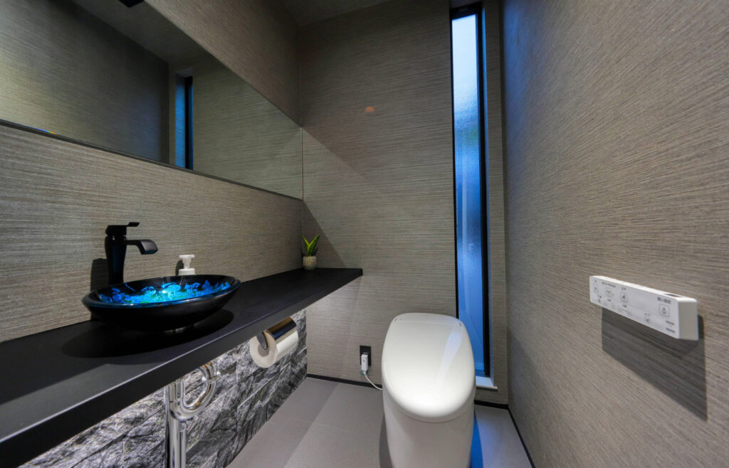 リビングの隣にあり、窓を開けると富士山が見えるバスルーム。