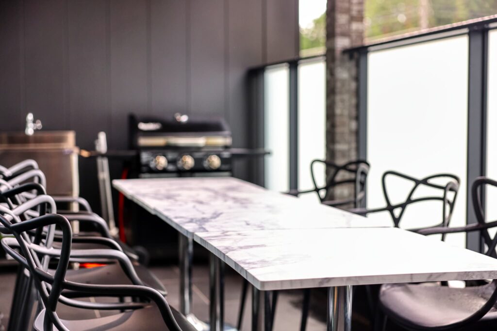 ほんのりと富士山の頭が見えるBBQテラス。気持ちい風を感じならがらプライベート空間でのBBQをご満喫いただけます。