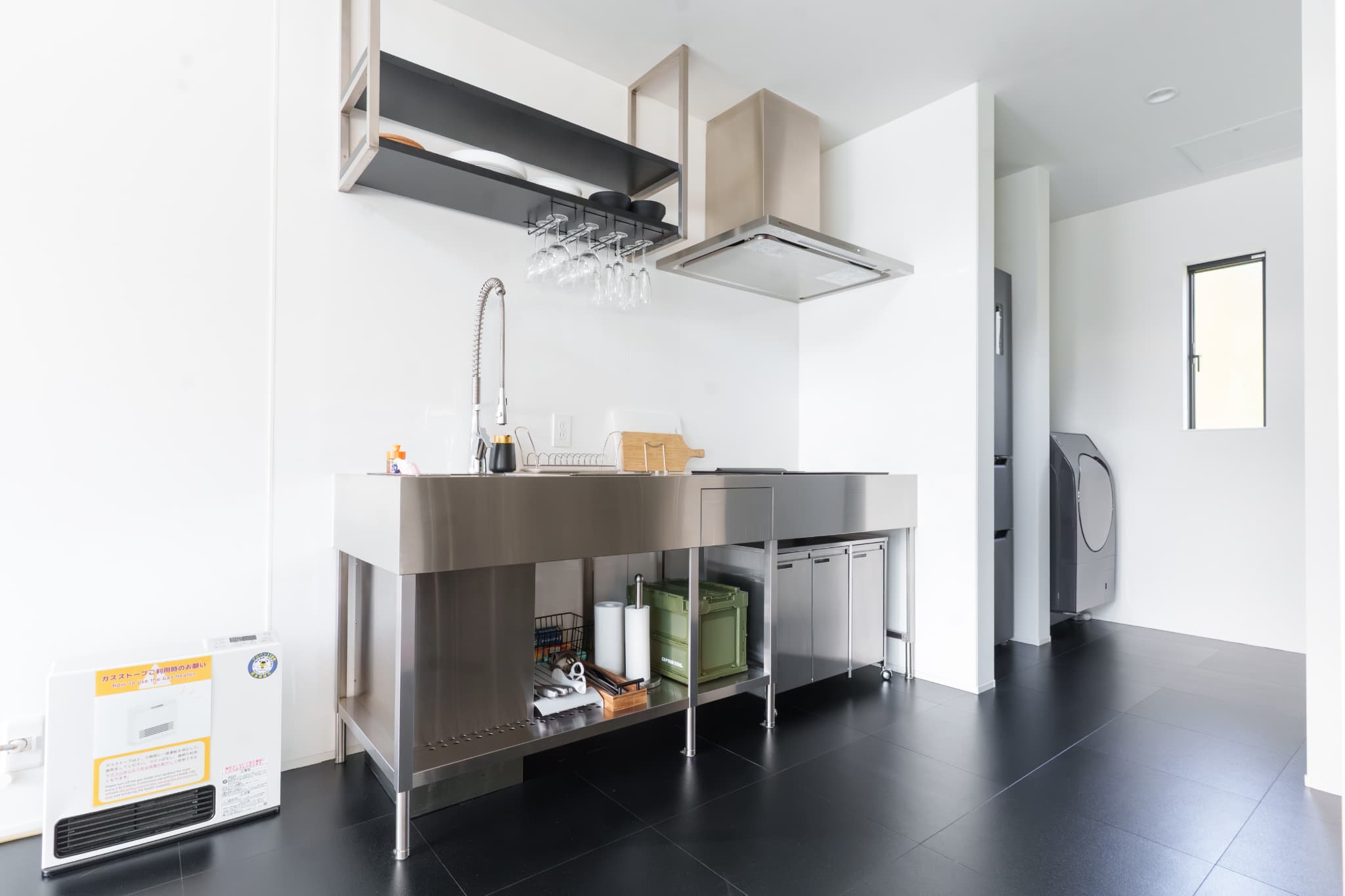 TV, air conditioning in all rooms, refrigerator (with freezer), air purifier, free Wi-Fi, power outlets, microwave, full kitchenware set, tableware, electric kettle, coffee & tea, coffee machine, seasonings (pink salt, black pepper, salad oil, olive oil), washer/dryer, BBQ and bonfire equipment