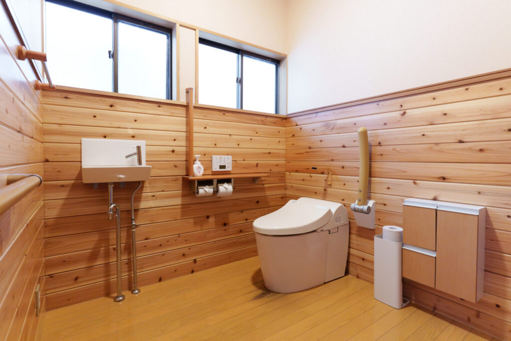 The spacious bathroom is designed to be safe and comfortable even for elderly guests.