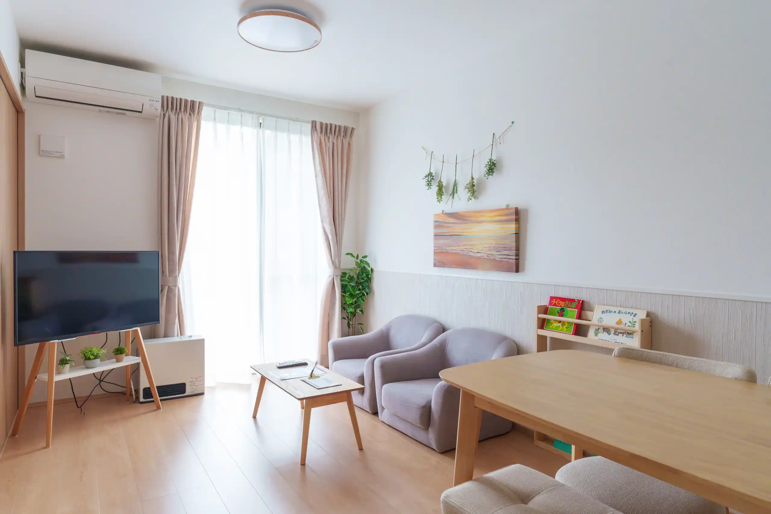 | Amenities / Facilities | Air conditioning in each room, air purifier, washing machine, dryer, hair dryer, kitchen Cooking utensils, pots, pans, cutlery, tableware, microwave, refrigerator (with freezer), TV, pet supplies |