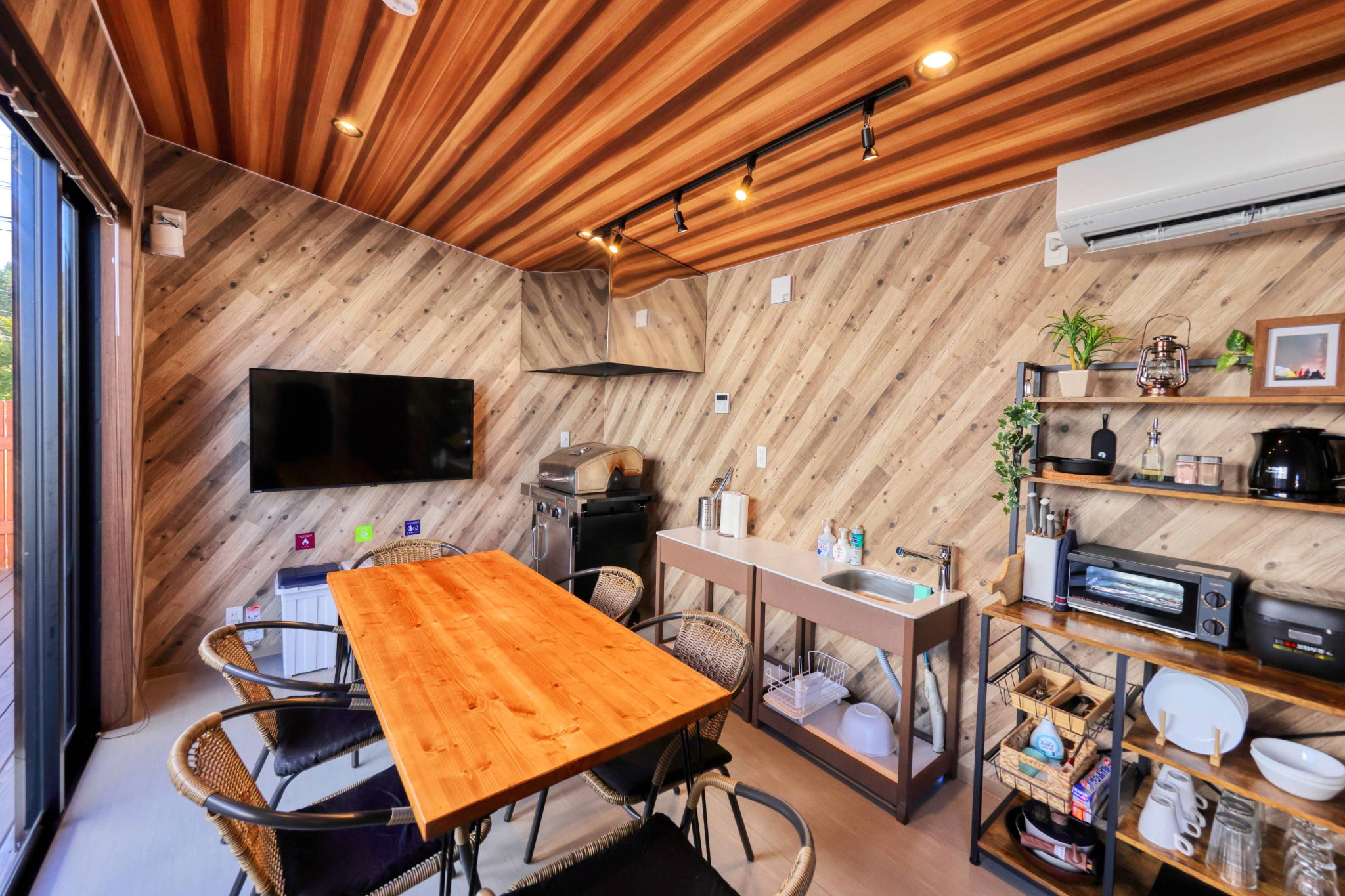 A private space where you can comfortably enjoy BBQ and meals regardless of weather or season (BBQ grill rental fee: ¥4,000).