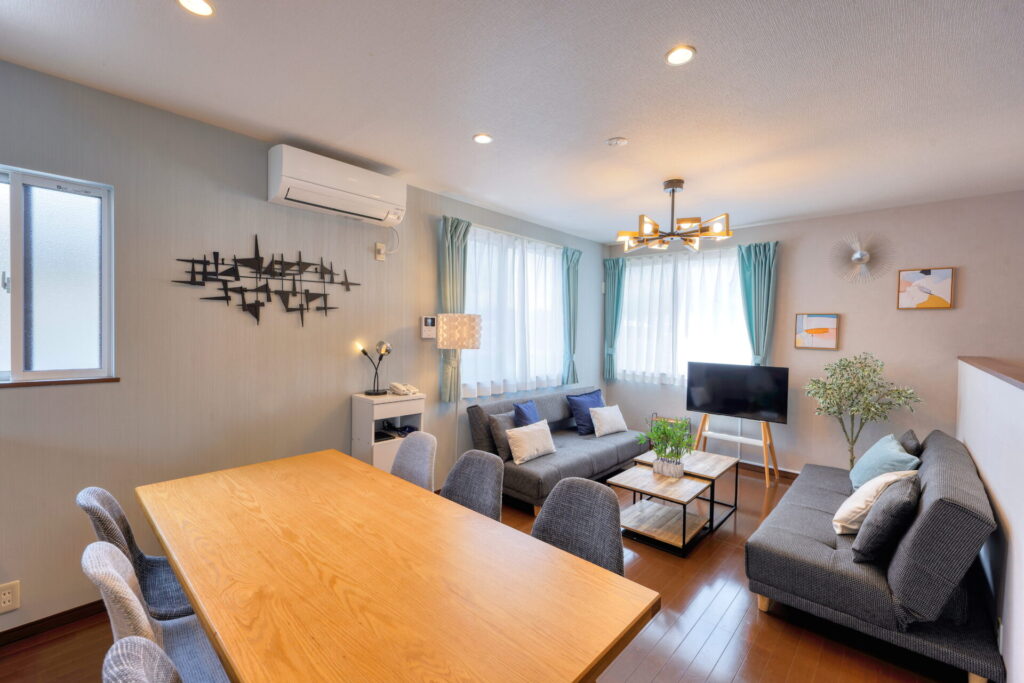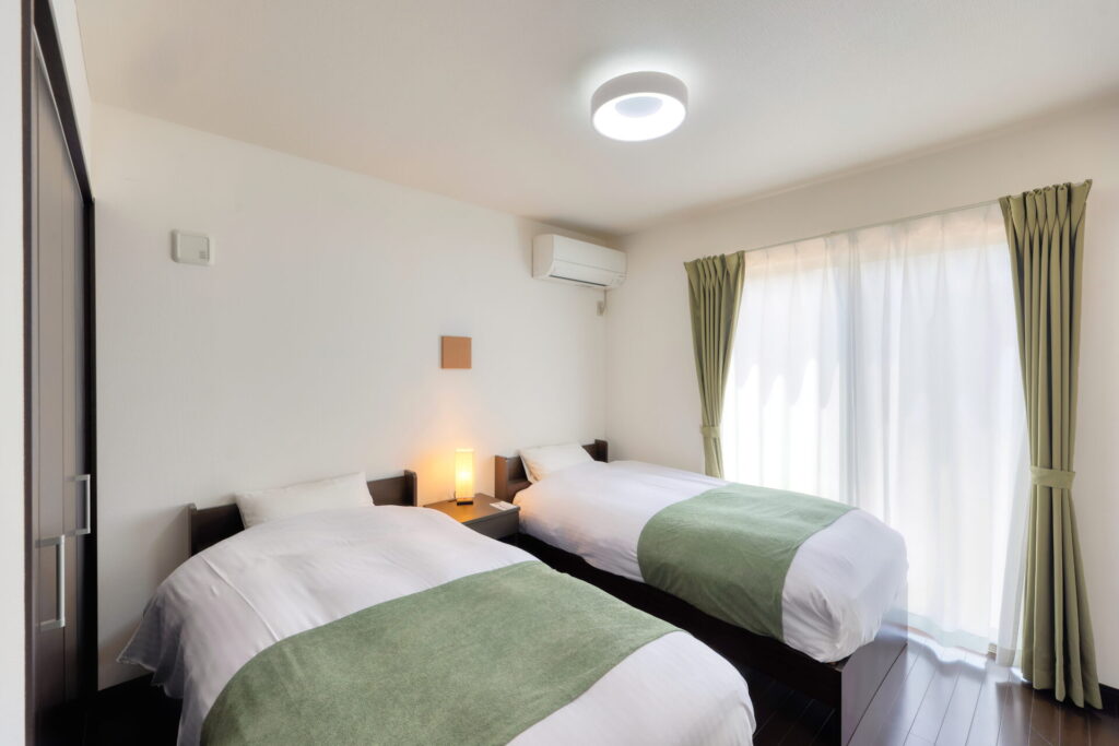 A relaxing space suitable for all ages. Equipped with 3 bedrooms, 6 single beds, and 2 futon sets.