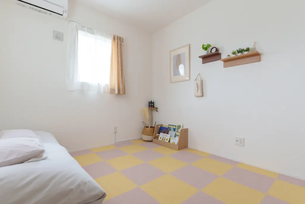 布団を敷いて寝れるかわいらしいお部屋です。絵本を読んだりゴロゴロタイムをお楽しみいただけます。子供部屋としてもご利用いただけます。