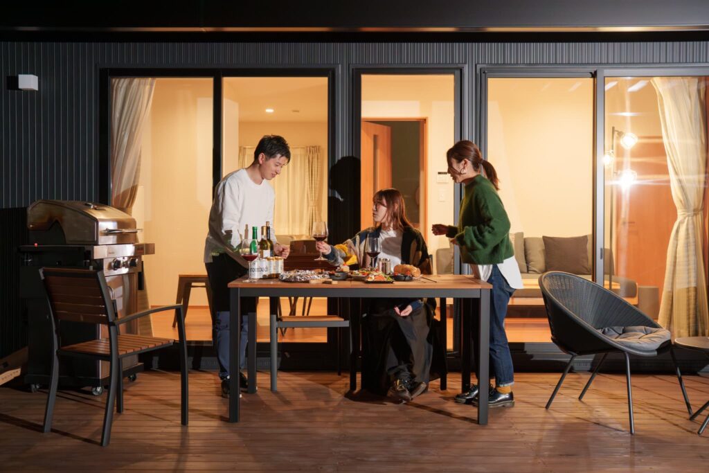 広々としたテラスでは、人気のグランピングスタイルBBQを楽しめます。